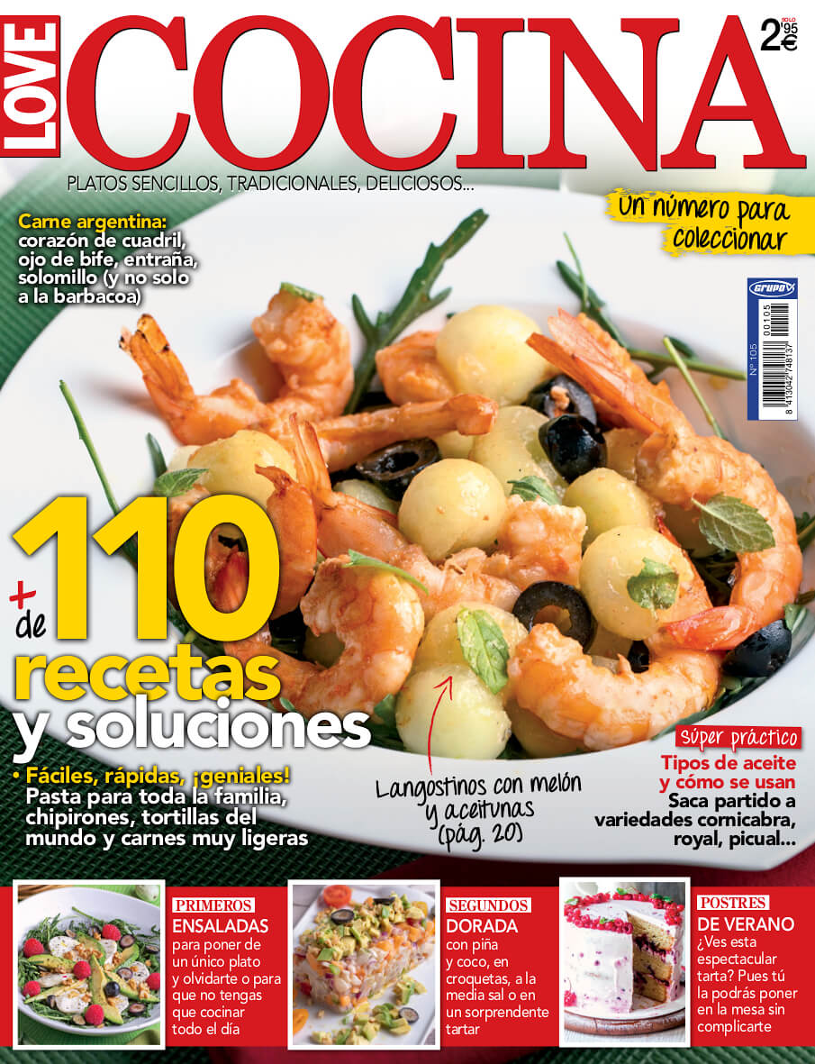 Si buscas recetas fáciles, rápidas, muy caseras… ¡aquí las tienes! Bucea por las páginas de Love Cocina para encontrar sanas y ricas ensaladas. Dale una vuelta a tu pasión por la pasta con platos que podrás llevar a tu mesa más familiar. ¿Te gusta el gazpacho? Pues no te pierdas lo que puedes hacer con él más allá de ponerlo de primer plato. Dorada, chipirones, tortillas famosas, carnes argentinas (y sus secretos) o las más ligeras. Toda la variedad que necesitas para triunfar. Y no, no nos olvidamos del postre. Una fresca macedonia, una tarta espectacular y un sorbete de fresas son solo algunas de las propuestas para un verano perfecto.