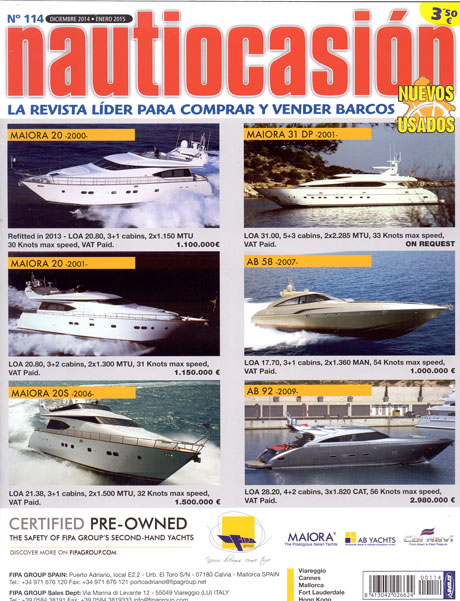 Nautiocasión es la revista náutica líder de compra-venta de barcos nuevos y de segunda mano. Toda la oferta y demanda de barcos clasificados por tipo de embarcación. La más completa oferta editorial de anuncios de embarcaciones profesionales y particulares: Anuncios de compra y venta y ocasión de barcos a motor, barcos a vela, neumáticas, motos de agua, canoas, botes, equipo, servicios, material de segunda mano, remolques, amarres e inmobiliaria.